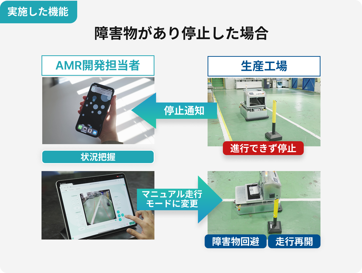 - 上記解決のため、AMRに遠隔機能を付けたいが実現方法が決まっていない